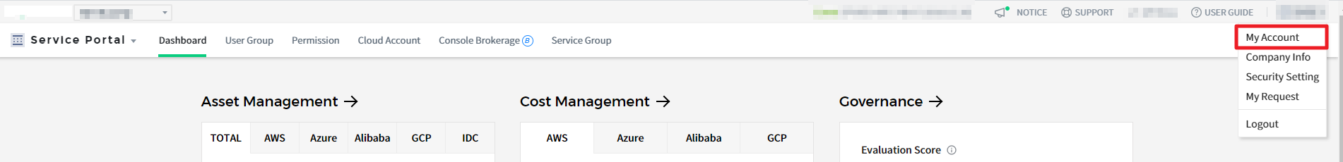 Select My Account menu located on the top-right corner of the screen. On My Account page, you can set personal information and additional security settings.