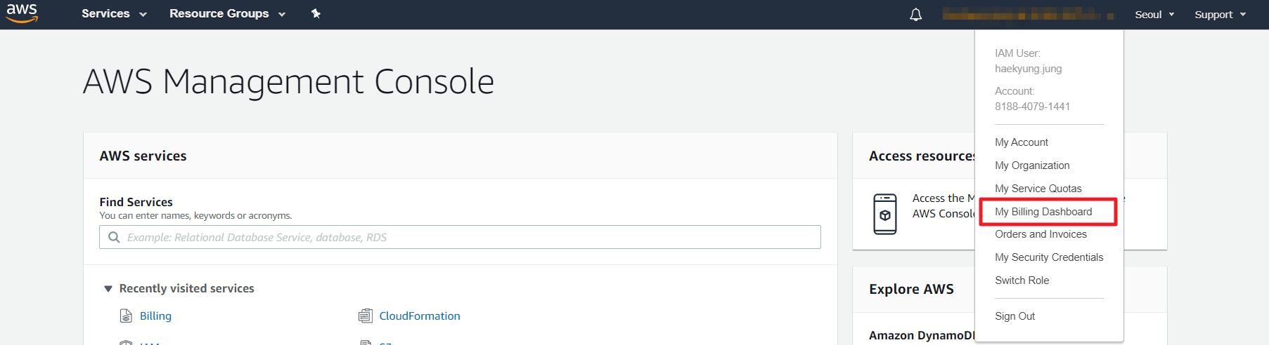 現在の日付を基準に先月の同一期間に対する発生コストと先月の全体コストを表示し、先月の全体コストと先月の同一期間に対する発生コストを棒グラフで表示してユーザーが今月のコストと比較確認できます。ブルーは現在の日付を基準に発生したコスト、左側の棒グラフのホワイトはまだ使用していないコスト、オレンジは集計中のコストを表示します。 - クラウドサービス別の情報