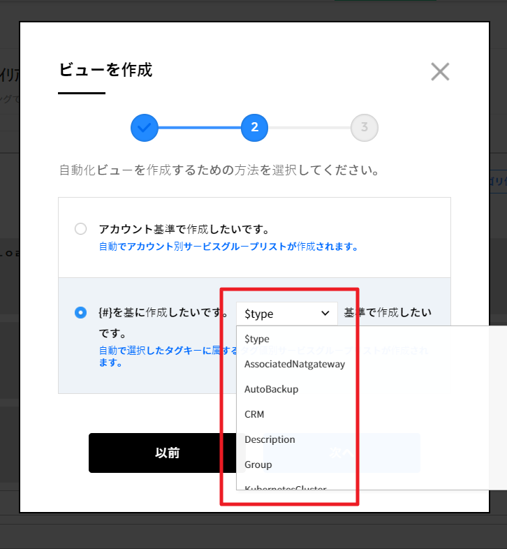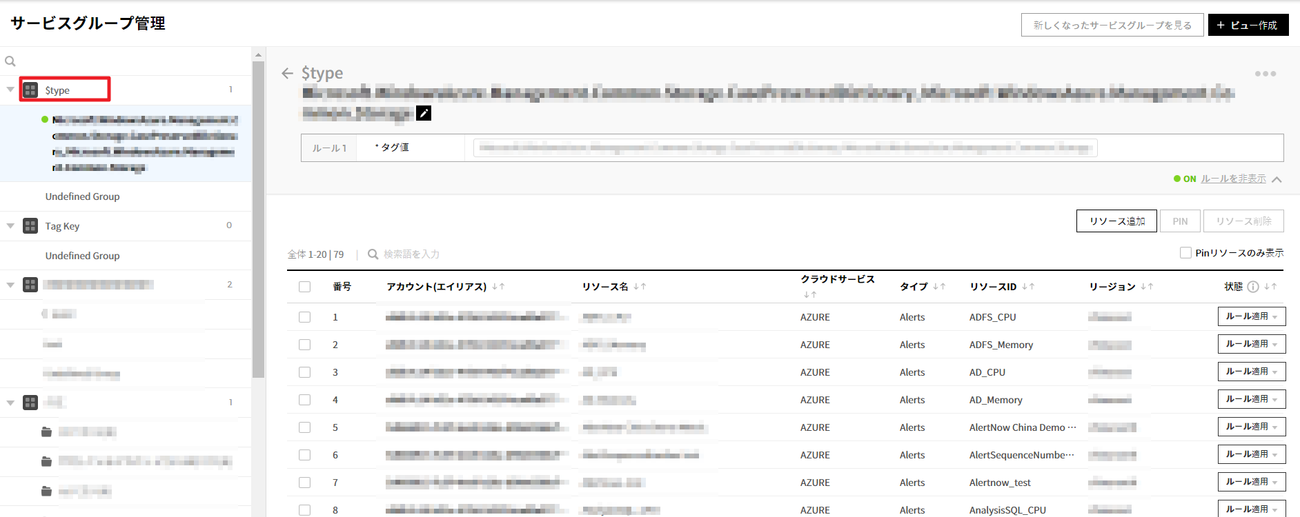 タグを基準に作成されたサービスグループのリソース自動追加条件設定