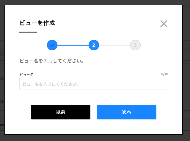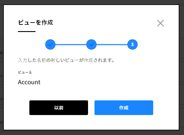次をクリックすると、指定された名前でビューが作成されたという案内メッセージが出力されます。