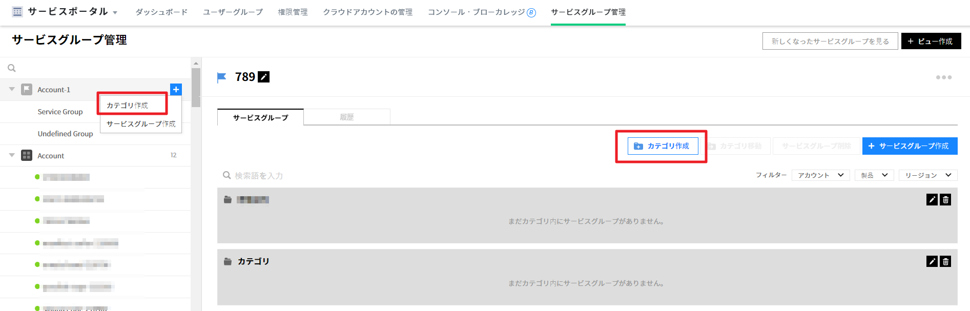 作成されたサービスグループをもう一度束ねて管理したい場合、カテゴリー機能を使用できます。
