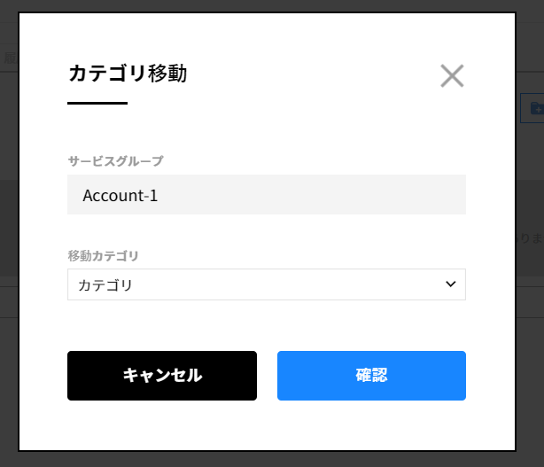 削除ボタンをクリックすると、カテゴリー削除の確認ポップアップが表示されます。削除をクリックすると、選択したカテゴリーは削除されカテゴリーの中に含まれていたサービスグループのカテゴリーに含まれないサービスグループに変更されます。