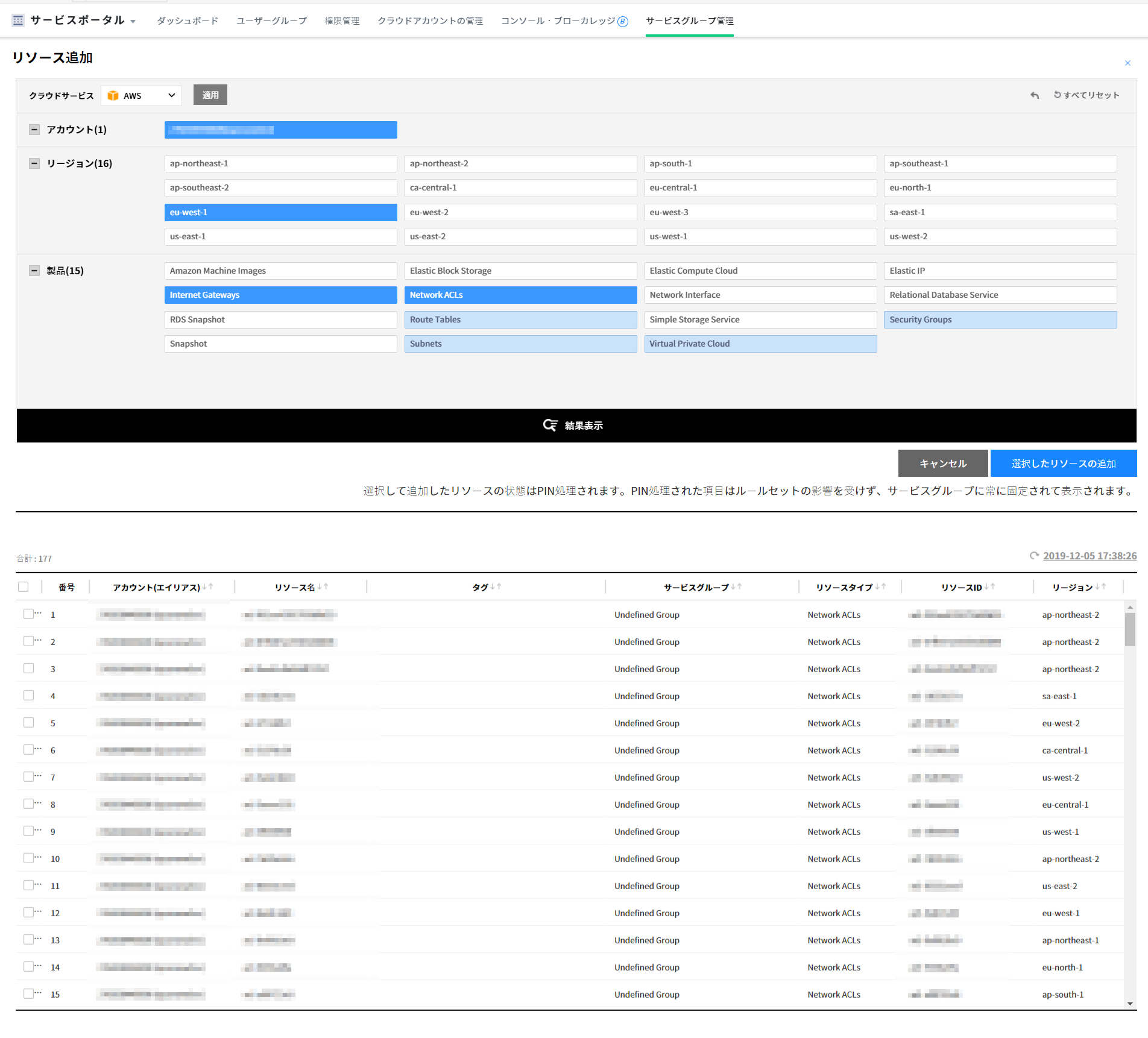 該当サービスグループに自動または手動でリソースをマッピングして管理できます。![]()