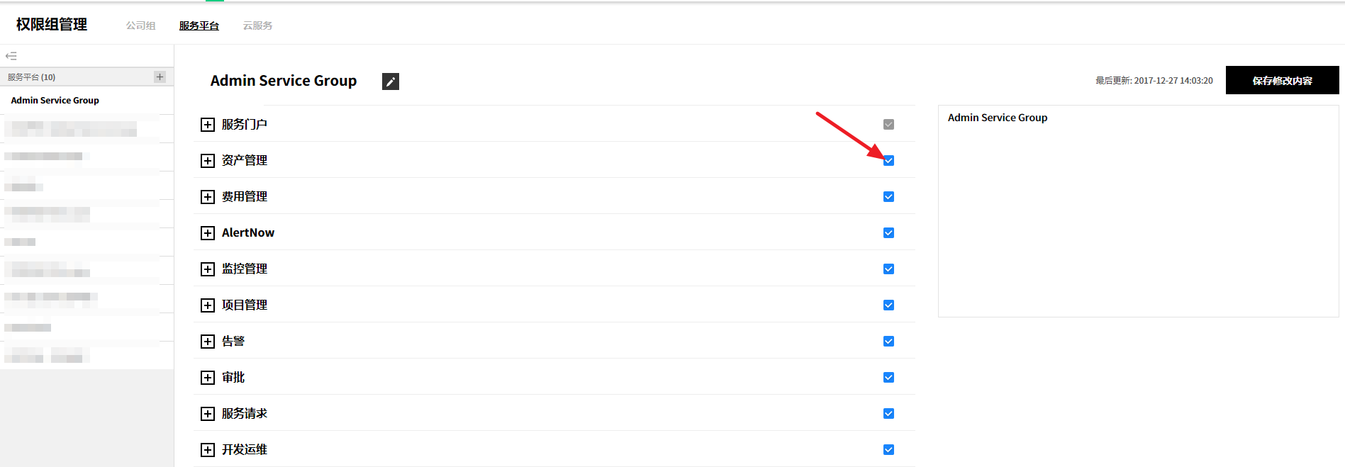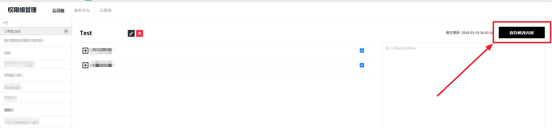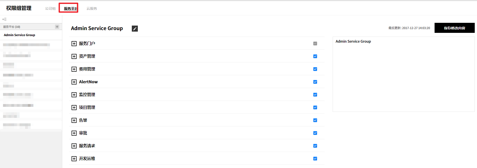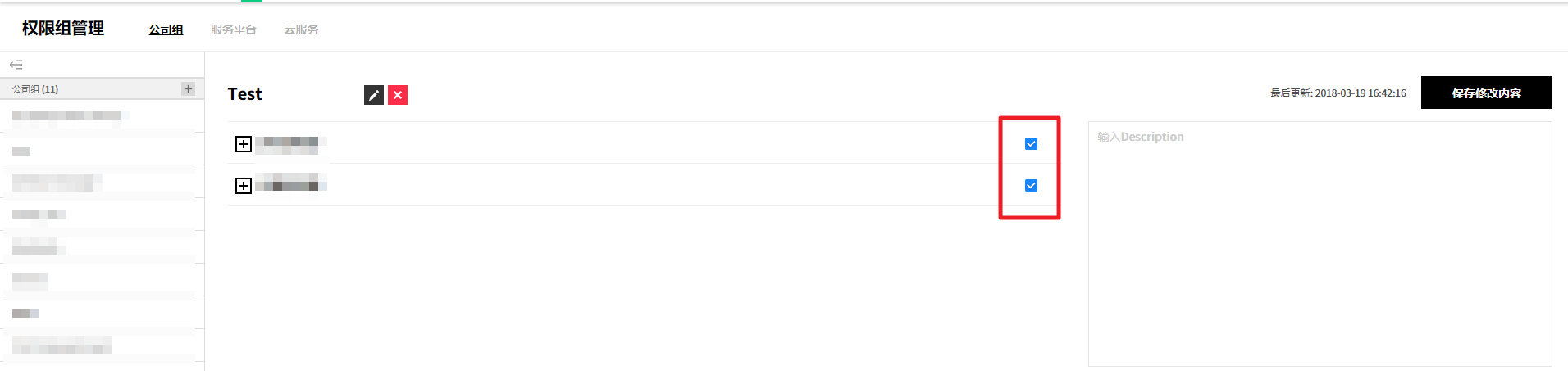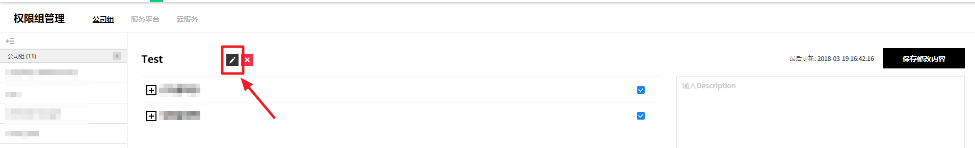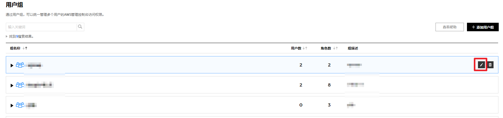 ② 或者从详信息页面中选中要删除的服务组,并通过点击右上角的删除服务组按钮来统一删除服务组,或将鼠标悬浮在要删除的服务组上,将出现编辑、删除、添加按钮。 此时,点击删除按钮将其删除。