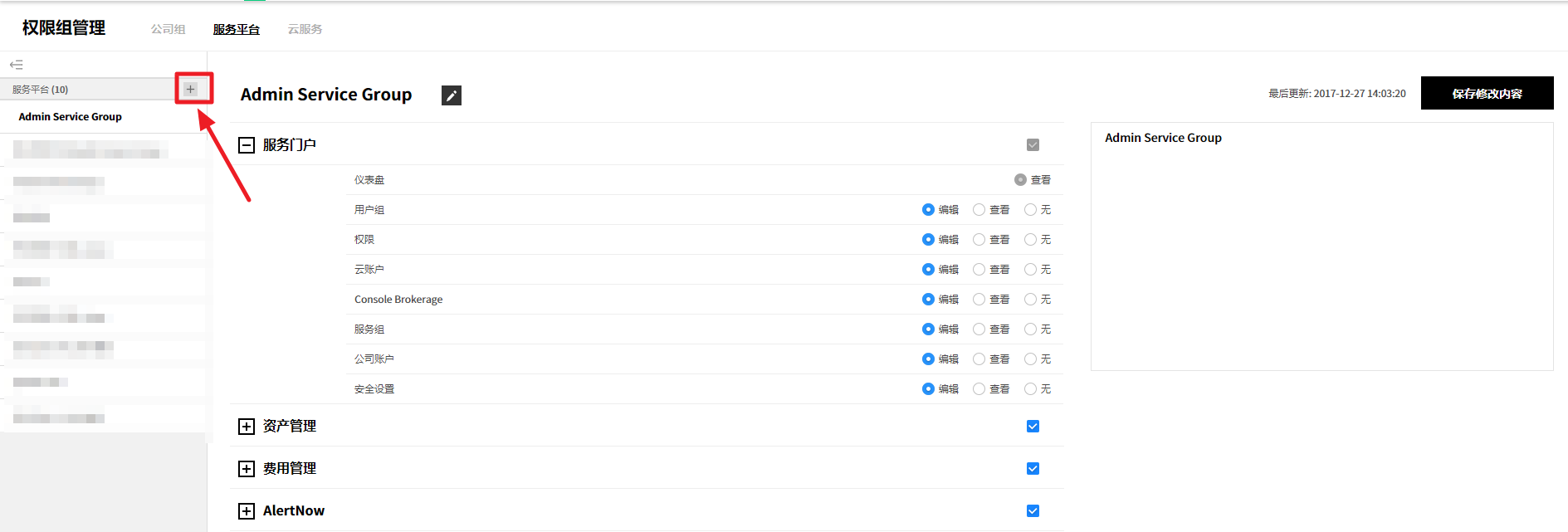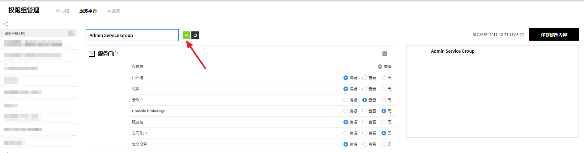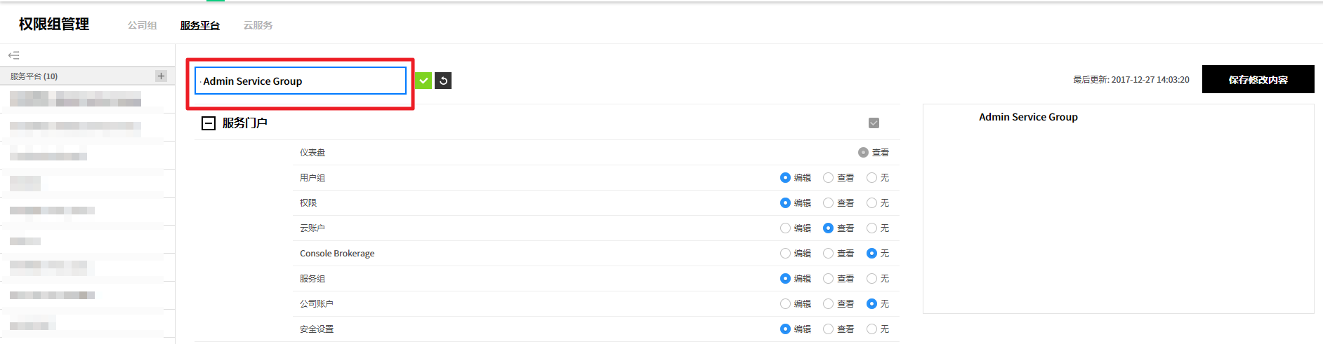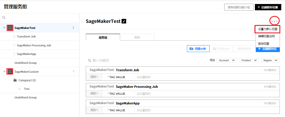 用户创建的服务组规则设置页面