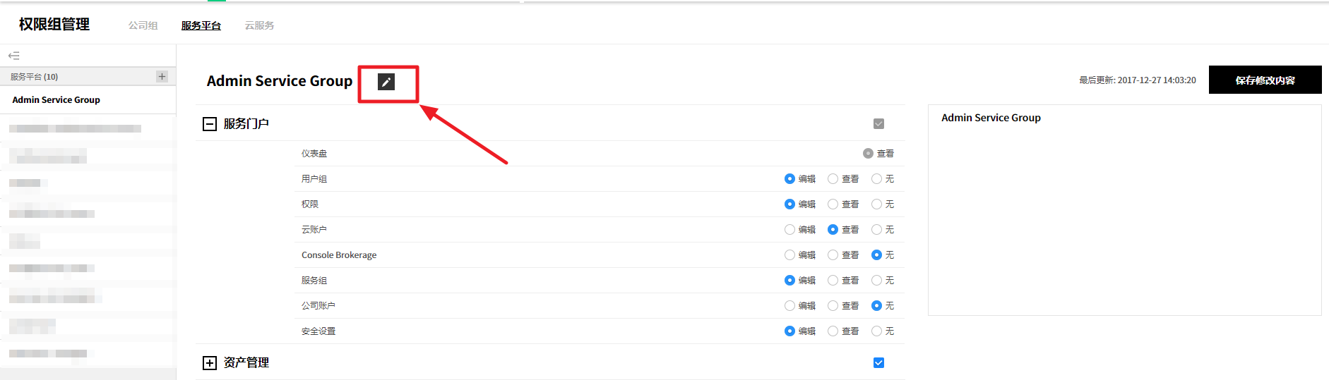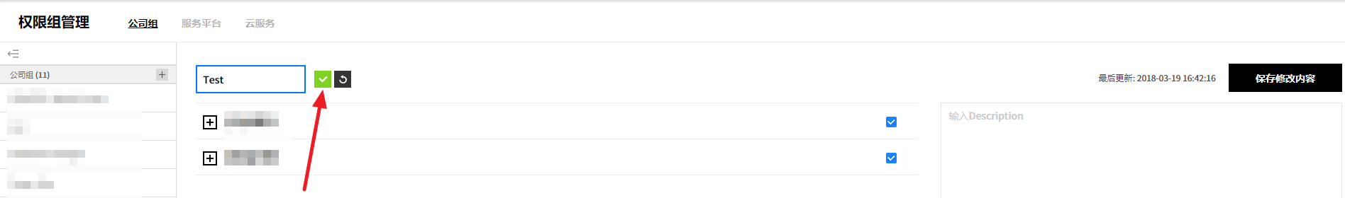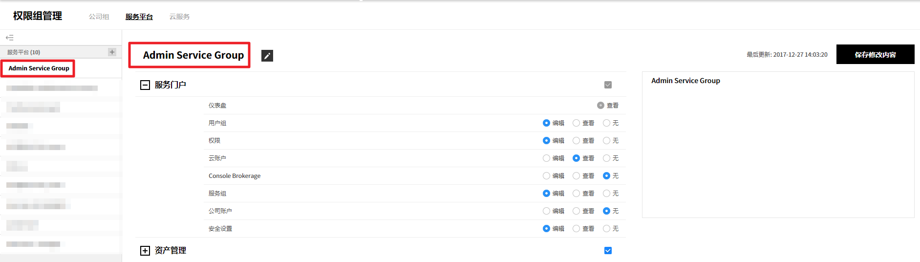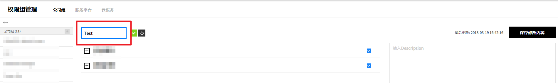 用户创建的服务组规则设置页面