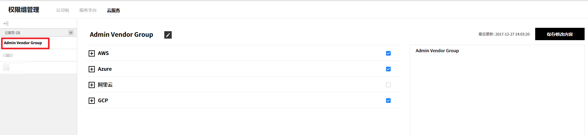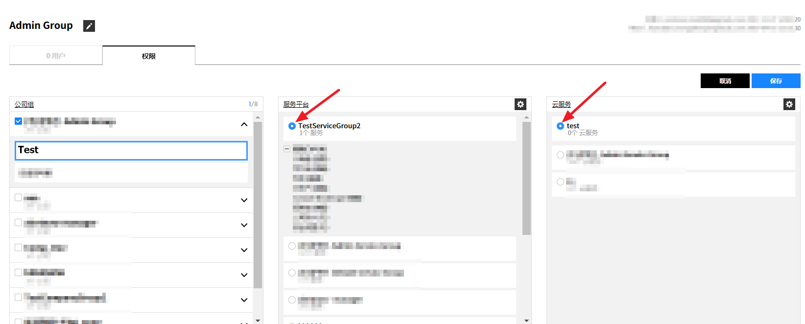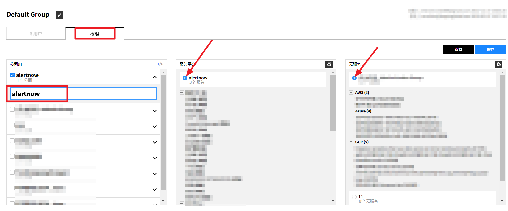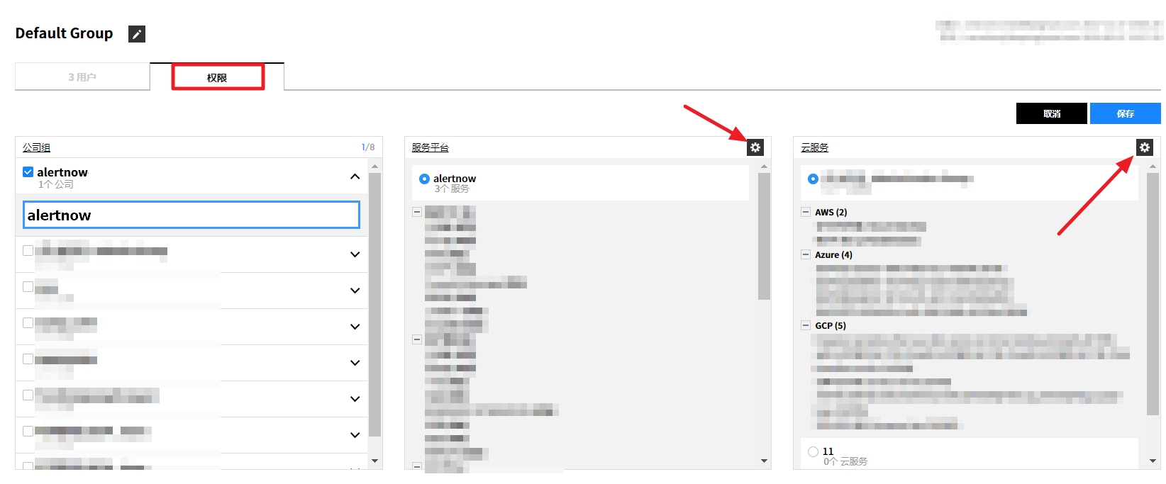 您可以为每个服务菜单和云账号配置权限。可通过关联权限与用户组来管理权限。如果是多个分公司共同使用服务时,则可使用公司组控制对各公司的访问权限。