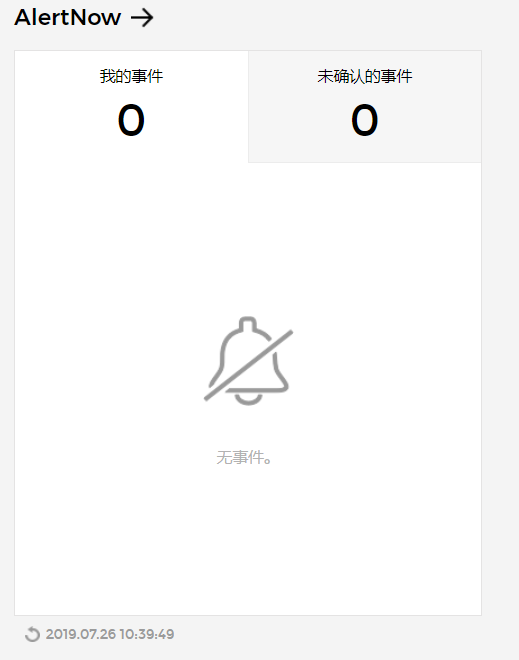 点击AlertNow卡片视图上端的箭头,则将转到AlertNow仪表盘页面。 - 我的事件/未确认事件