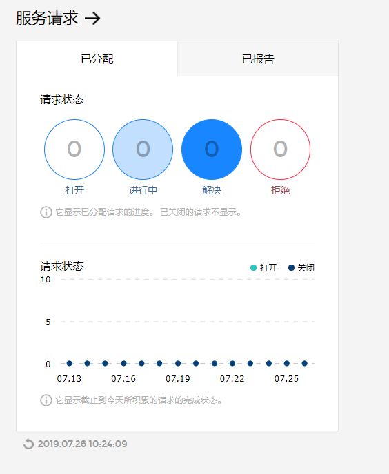 通过数字和图表,可以查看分配给用户的请求及用户自己发出的请求以及请求状态。