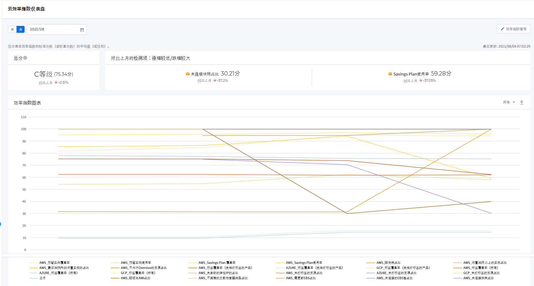 - 期间:可按周或按月查看云效率指数。