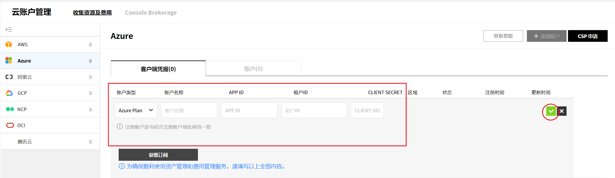 Azure CSP使用信息