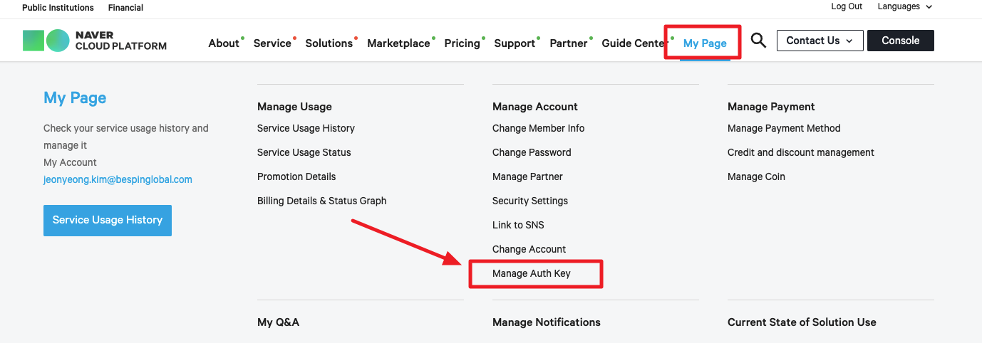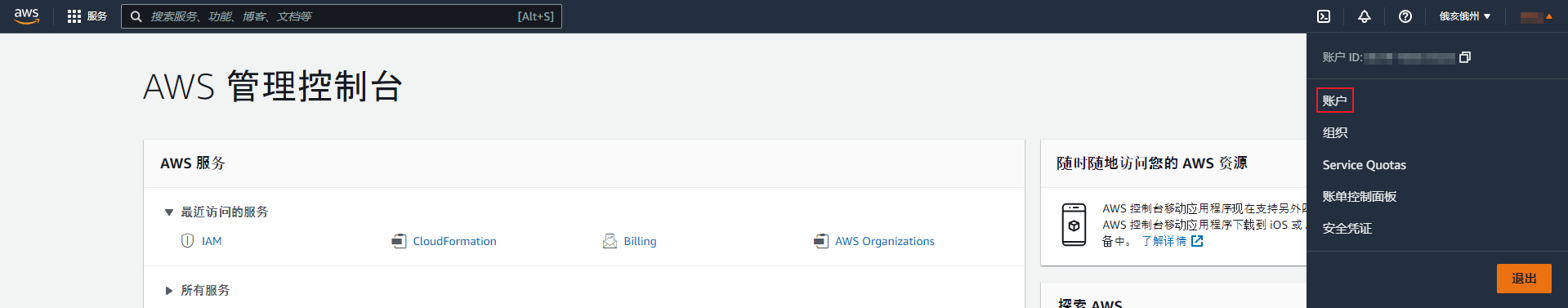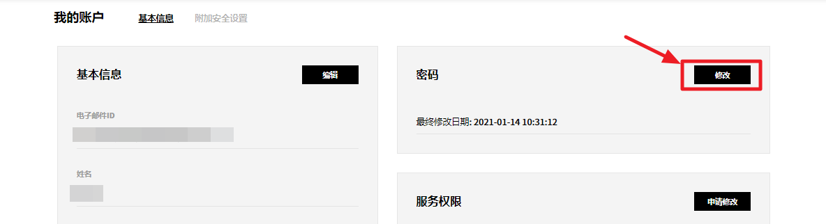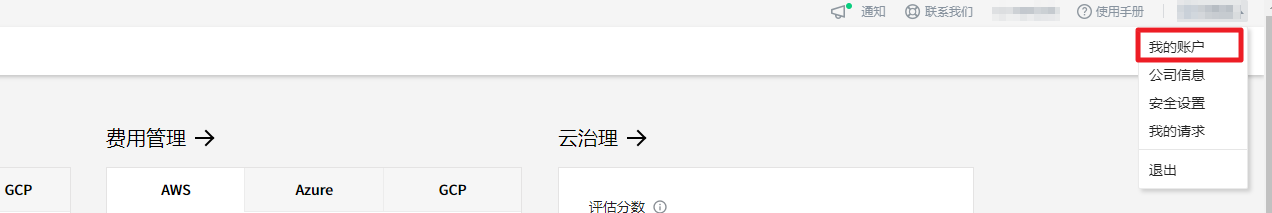 点击服务门户右上角的用户名,然后选择我的账户菜单。 可以在我的账户页面设置账户基本信息和附加安全。