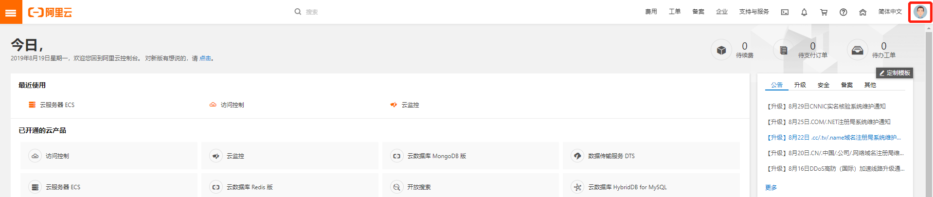 注册云账号后,资源数据可在大约1小时后查看,费用数据可在大约24~48小时后查看。