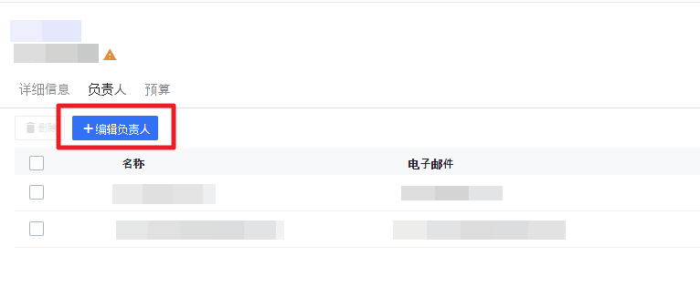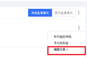可以通过从组织列表中选择一个节点并点击 负责人 按钮或点击右上角的 编辑负责人 按钮来指定负责人。