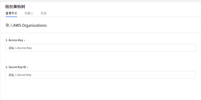 如果您正在使用AWS Organizations服务管理您的账户,则可以加载AWS Organizations并在组织架构树中监控费用。点击 查看更多 按钮,从下拉列表中选择 导入AWS组织,然后在下一页面中输入Access Key和Secret Key。点击创建按钮以设置新的组织架构树。