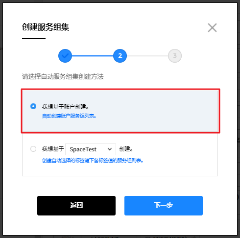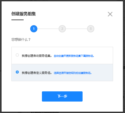 用户创建服务组的规则设置完成页面
