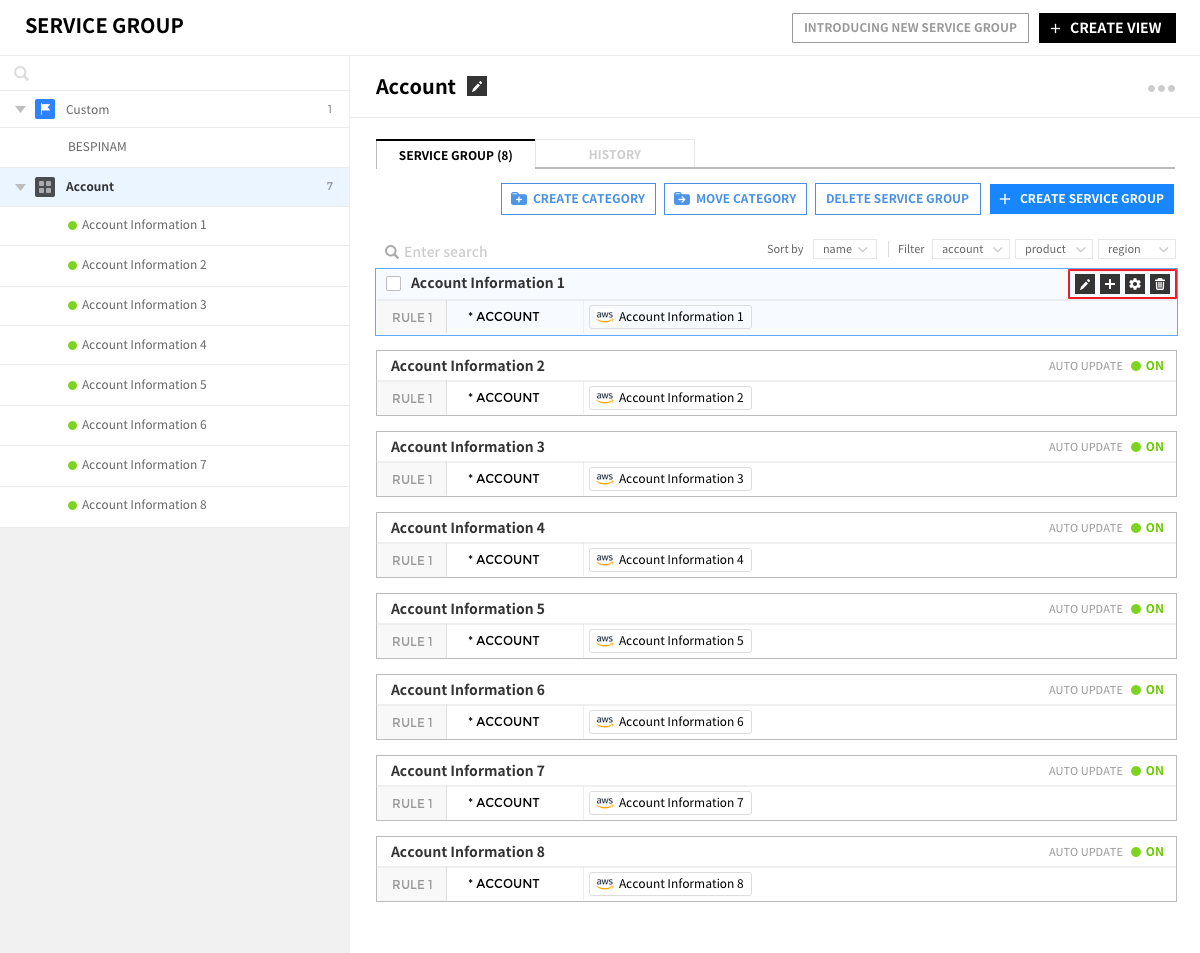 即使不删除规则,也可以通过ON/OFF自动更新功能, 让服务组更改为受规则影响或不受规则影响的状态。