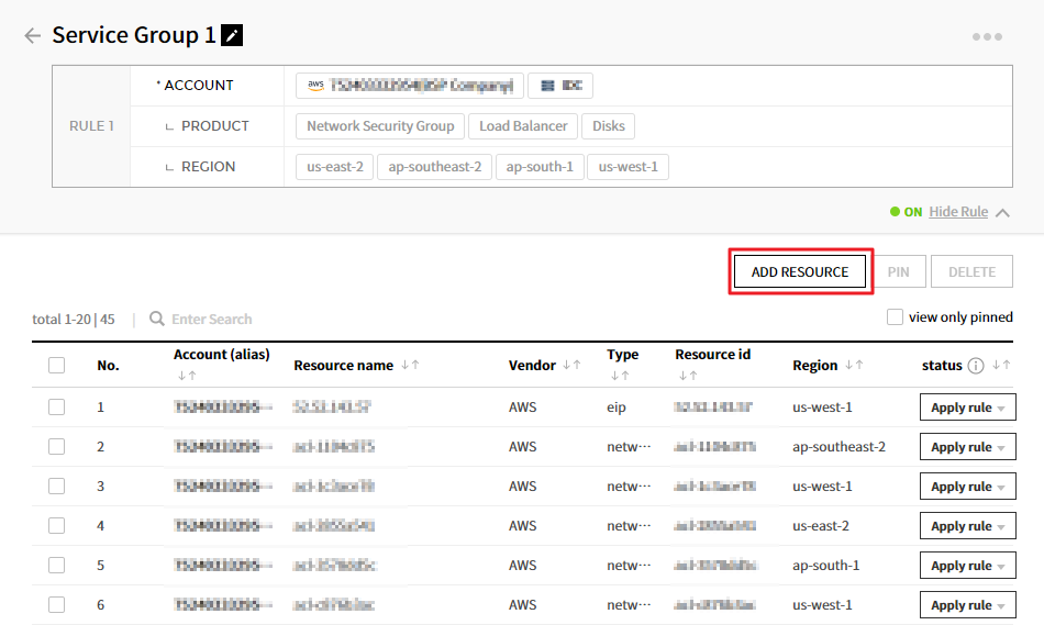 可以随时添加或更改规则,并且可以打开或关闭规则。 还可以使用【PIN】功能来防止特定资源受到规则的影响。