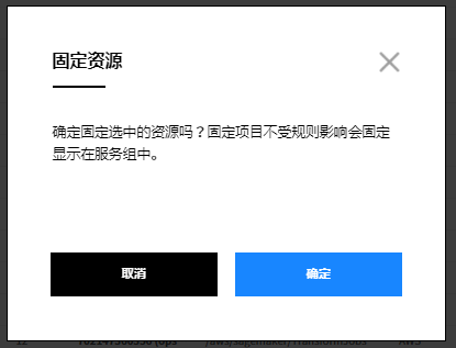 ② 如果PIN处理多个资源,则会显示告警弹出窗口。点击确定则会对所选资源进行PIN处理,并更改为不再受规则影响的资源。