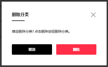 ① 将鼠标悬浮在已创建的分类名称上,将显示编辑和删除按钮。 点击删除按钮将其删除。