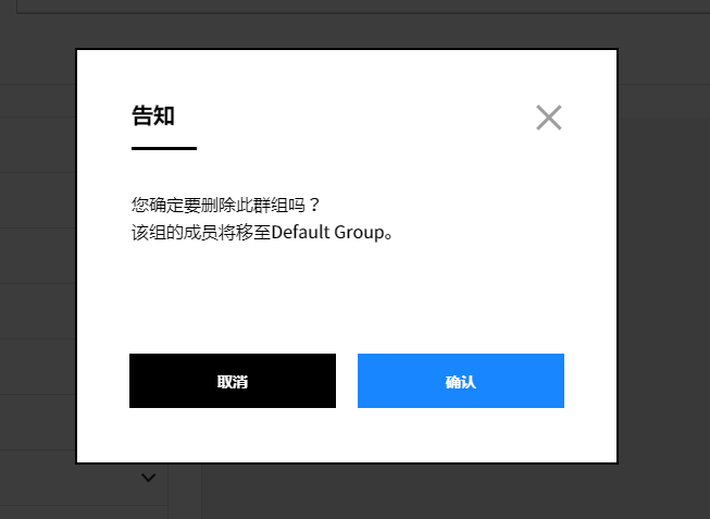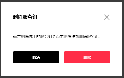 ③ 点击删除按钮,将显示确认删除的弹出窗口。选择删除以删除服务组。